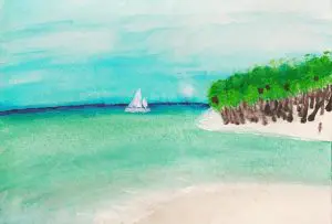 Les différents cours suivis alimentent sa recherche, passant de l’aquarelle en tube aux encres d’aquarelle, puis à l’acrylique, y ajoutant des textures subtiles mais bien présentes. Ces expressions de couleurs vibrantes révèlent une sensibilité à la finesse des couleurs.