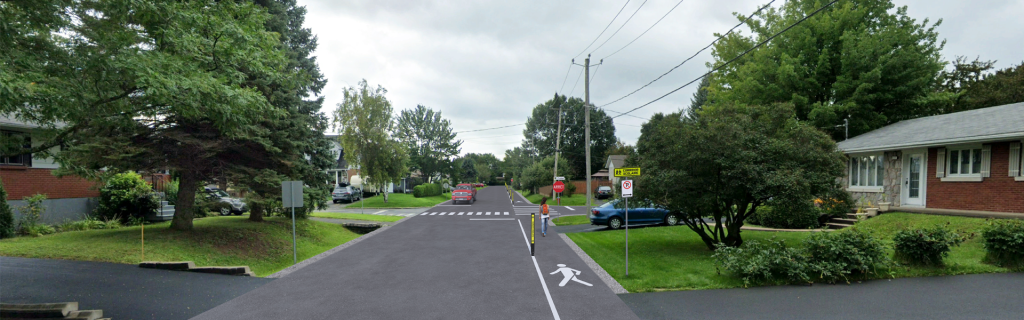 Le corridor scolaire, qui sera ajouté du côté des adresses impaires de la rue, permettra aux piétons et aux élèves du quartier de se déplacer en toute sécurité vers l’école de la Chanterelle.