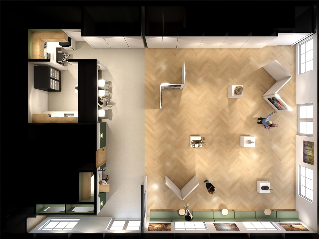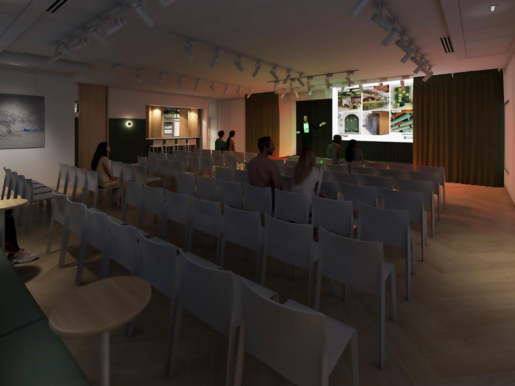À l’intérieur, les espaces seront réaménagés et dotés d’équipements polyvalents de qualité, tels une scène rétractable, un système de sonorisation et d’éclairage scénique, et tout le nécessaire pour l’exposition d’œuvres d’art, notamment un système d’accrochage adaptable et des cloisons amovibles.